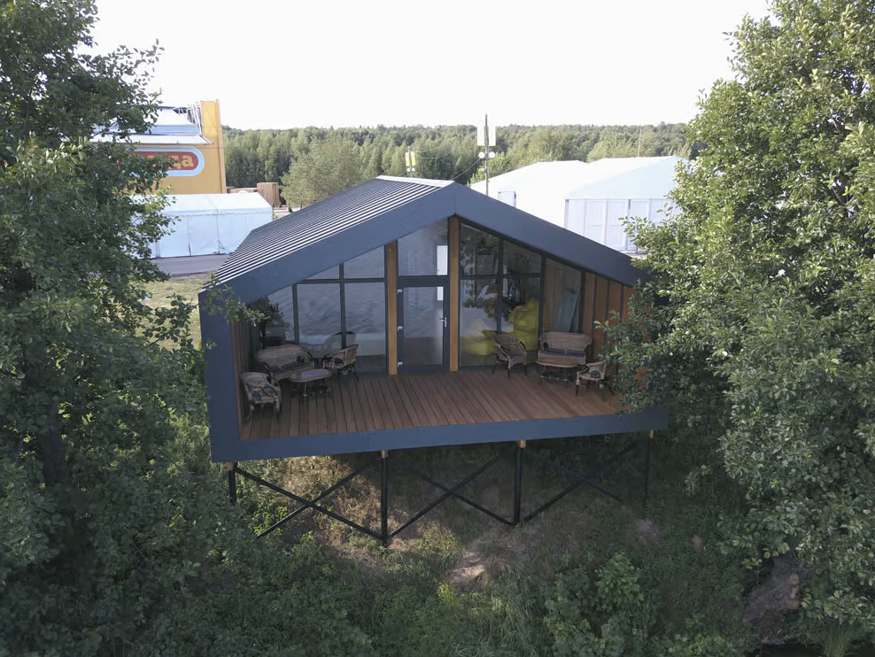 В случаях, когда кровля и боковые фасады исполнены в металле, можно обойтись без водосточной системы и снегозадержателей. Тем не менее, мы рекомендуем установку данных опций.